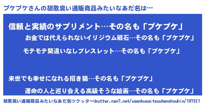 | 意味不明あだ名 | 『ペロリンプケプケ』『永久保存プケプケ』 |