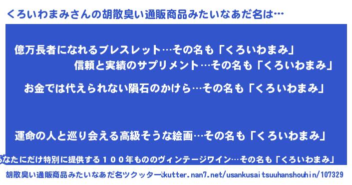 | 意味不明あだ名 | 『眠気覚ましガムくろいわまみ味』 |