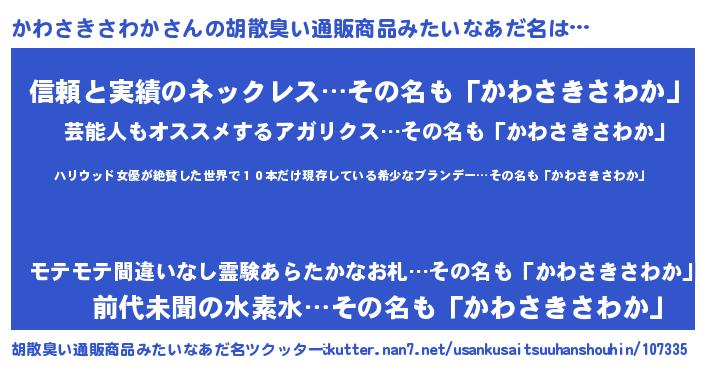 | ヘコむあだ名 | 『かわぷりん』『かわさきさわか(笑)』 |