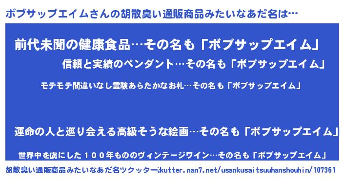 | ヘコむあだ名 | 『ボブもー』『ボブサップエイム(苦笑)』 |