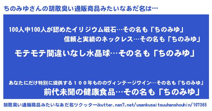 | ヘコむあだ名 | 『ちのふぇ~』『ちのみゆ(爆)』 |