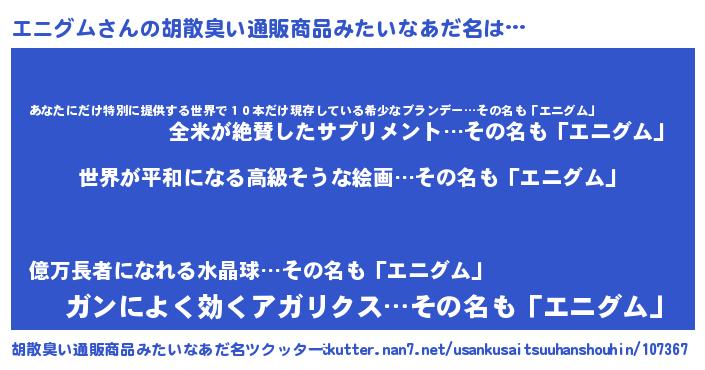 | 意味不明あだ名 | 『エニグムフォーエバー』『自称エニグム』 |
