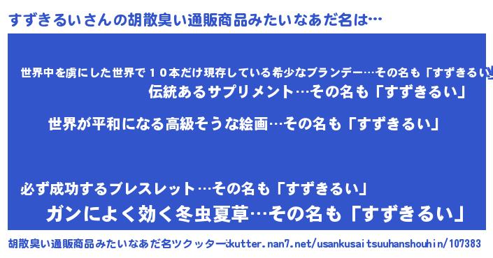 すずきるいさんの胡散臭い通販商品みたいなあだ名をツクッター!