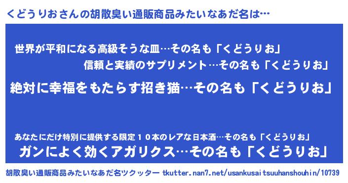 | ヘコむあだ名 | 『くどうりお(小並感)』『つくし』 |