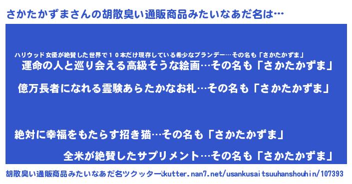 | ヒーロー風カッコイイあだ名 | 『スーパーサカタカズマ』『仮面サカダー』 |