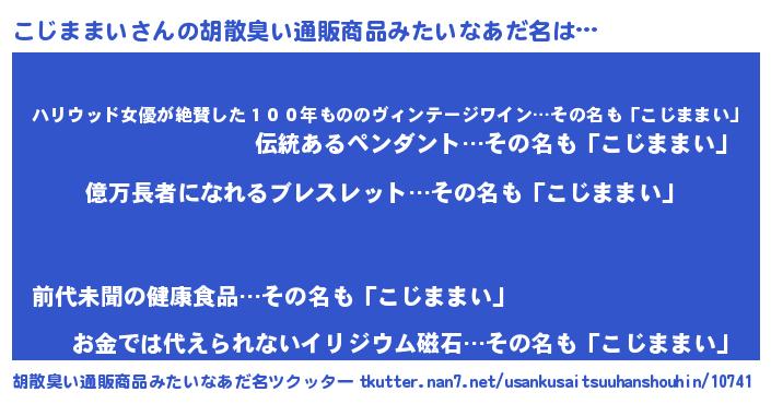 | 欧米人風あだ名 | 『こじままい・ステッグマイヤー』 |