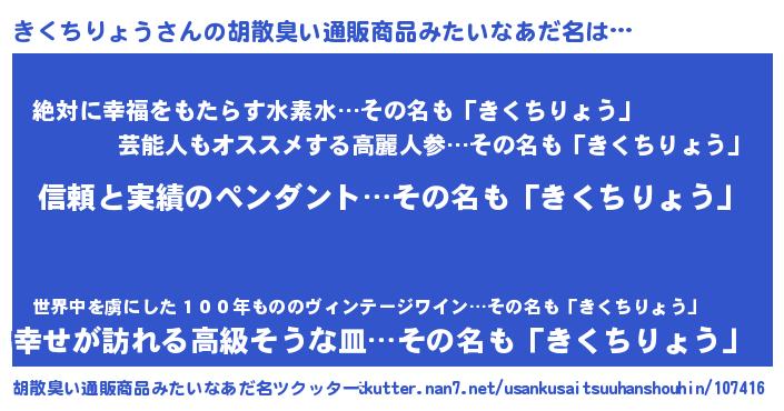 | 意味不明あだ名 | 『とにかく怪しいきくちりょう』 |