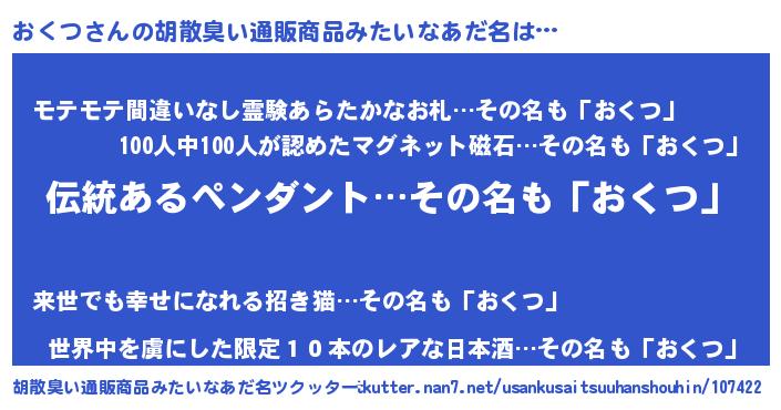 | 意味不明あだ名 | 『とにかく怪しいおくつ』 |