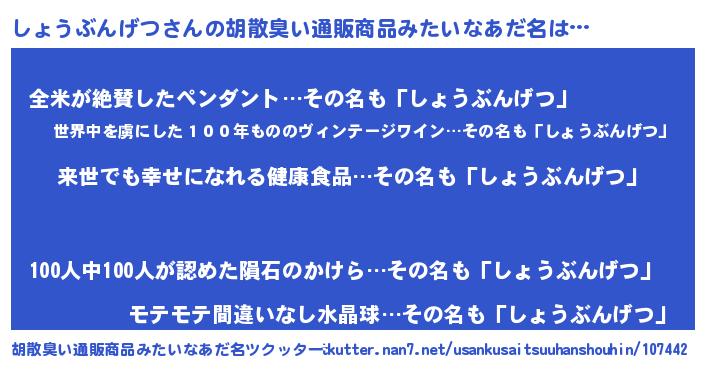 | 意味不明あだ名 | 『永久保存しょうぶんげつ』 |