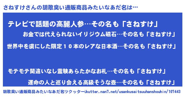| 女子向けラノベタイトル風あだ名 | 『乙女ゲームの破滅フラグしかない悪役さねすけに転生してしまった…』 |