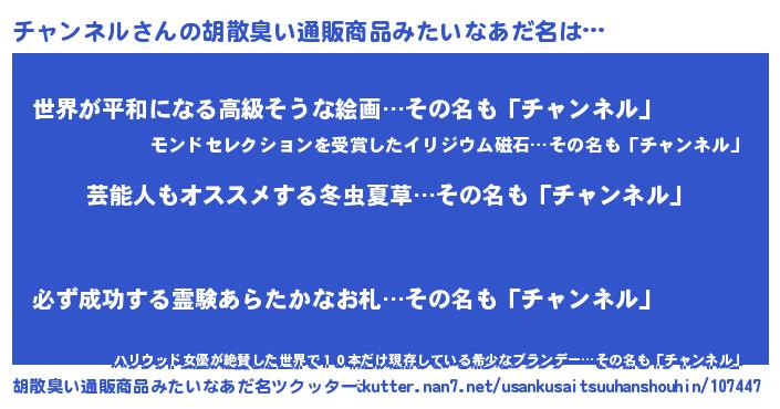 | 意味不明あだ名 | 『自称チャンネル』 |