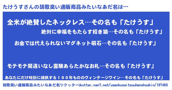 | ヘコむあだ名 | 『たけお』『たけうす(爆)』 |