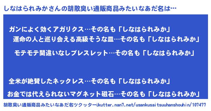 | ヒーロー風カッコイイあだ名 | 『スーパーシナハラレミカ』 |