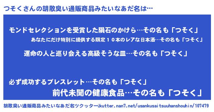 | ポケモン風あだ名 | 『ツソクダネ』『ツックウザ』 |