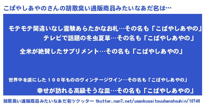 | 意味不明あだ名 | 『とにかく怪しいこばやしあやの』 |