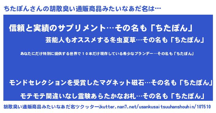 | 意味不明あだ名 | 『住所不定無職ちたぽん(79歳)』 |