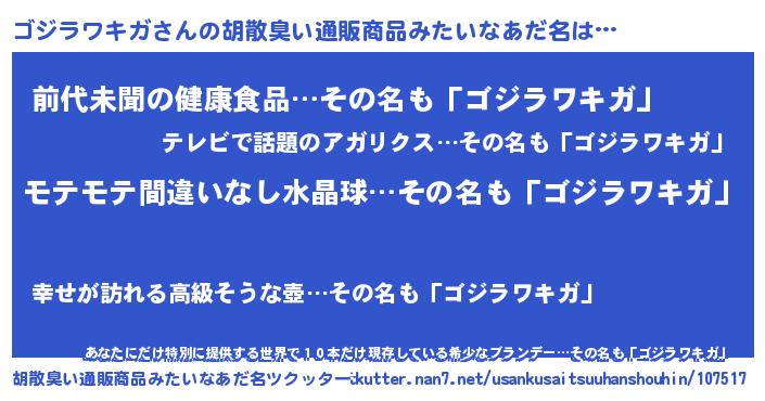 ゴジラワキガさんの胡散臭い通販商品みたいなあだ名をツクッター!