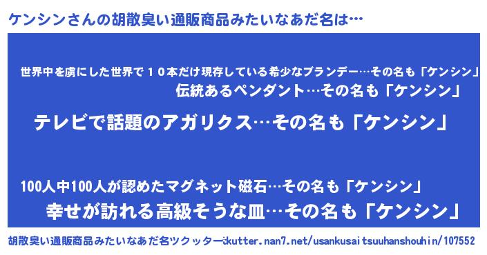 | 恥ずかしいあだ名 | 『ケンシンデラックス』『ケンっちょ』 |