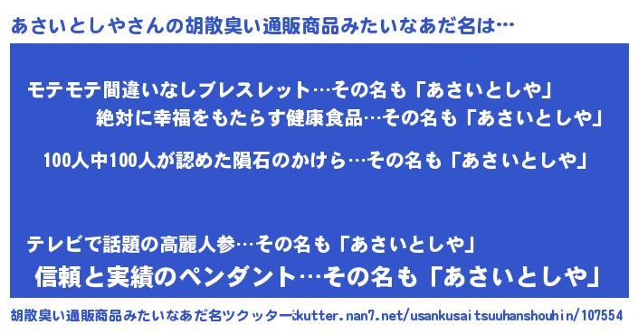 | ヘコむあだ名 | 『あさっふぃ~』『あさを』『牛乳』 |