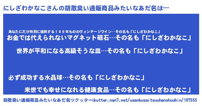 | ヘコむあだ名 | 『なまこ酢』『にしざわかなこ(震え声)』 |