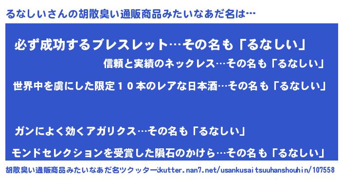 | 意味不明あだ名 | 『住所不定無職るなしい(59歳)』 |