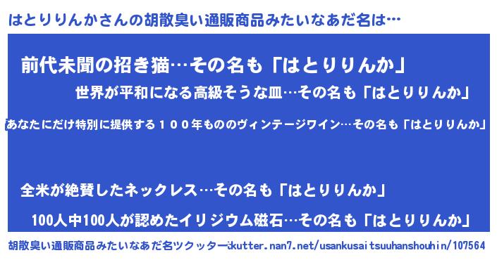 | ヘコむあだ名 | 『はとりりんか(小並感)』『レバニラ』 |