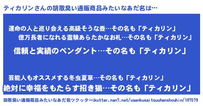 | 意味不明あだ名 | 『とにかく怪しいティカリン』 |