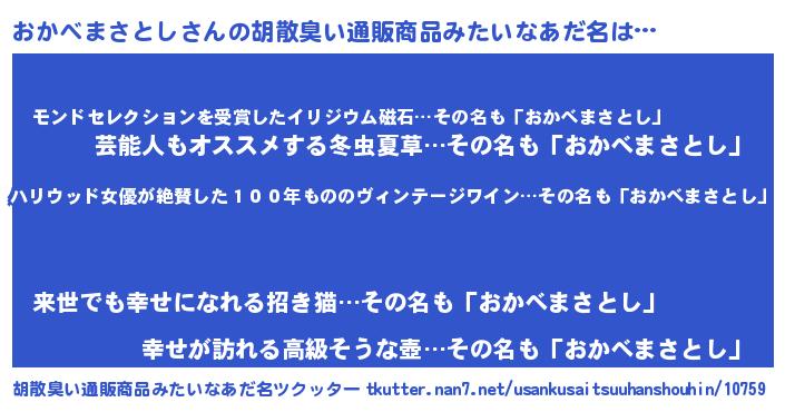 | 意味不明あだ名 | 『住所不定無職おかべまさとし(11歳)』 |