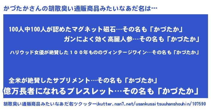 | ヒーロー風カッコイイあだ名 | 『仮面カヅダー』『天空の使者かづたか』 |