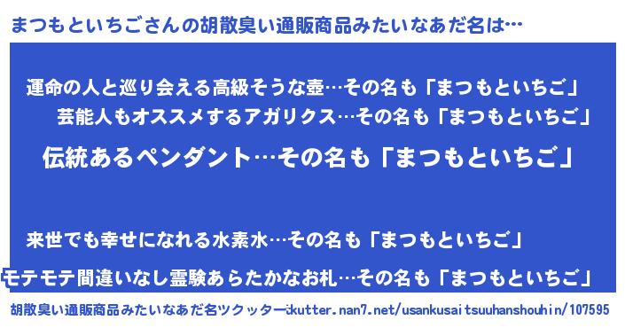 | 男性向けラノベタイトル風あだ名 | 『ダンジョンにまつもといちごを求めるのは間違っているだろうか』 |
