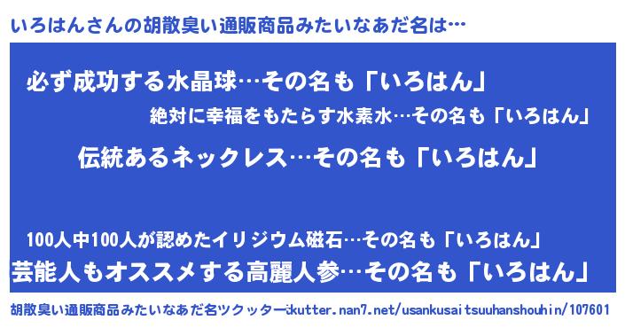 | 意味不明あだ名 | 『とにかく怪しいいろはん』 |