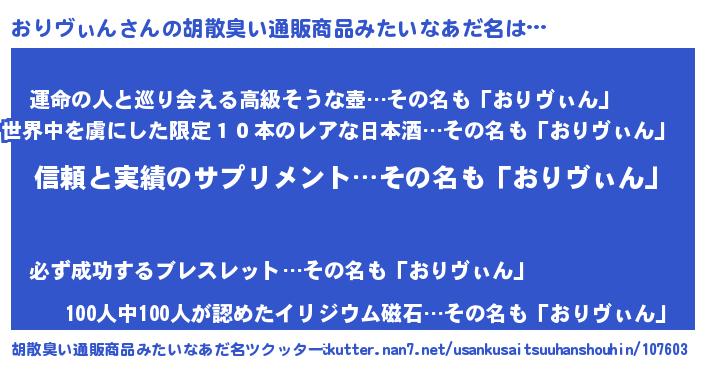 | 意味不明あだ名 | 『とにかく怪しいおりヴぃん』 |