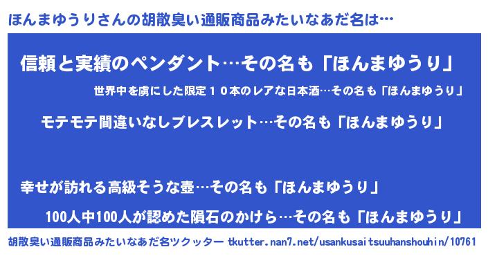 | 男性向けラノベタイトル風あだ名 | 『転生したらほんまゆうりだった件』 |