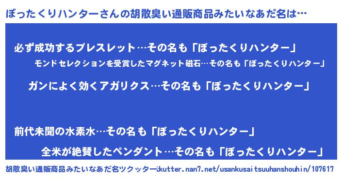| 意味不明あだ名 | 『自称ぼったくりハンター』 |