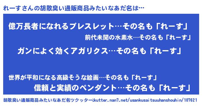 | 意味不明あだ名 | 『自称れーす』『ペロリンれーす』 |