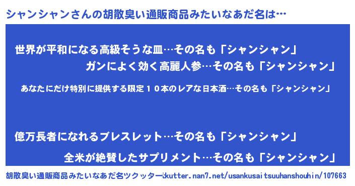 | 意味不明あだ名 | 『住所不定無職シャンシャン(43歳)』 |