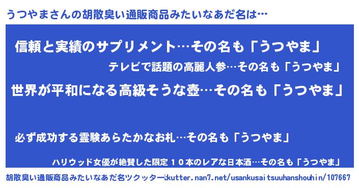 | ヒーロー風カッコイイあだ名 | 『ウルトラうつやまマン』『黄金騎士ウツ』 |