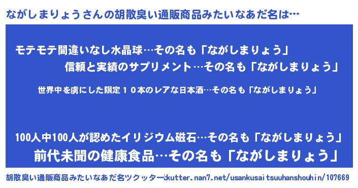 | ヘコむあだ名 | 『ながにゅー』『ながしまりょう(笑)』 |