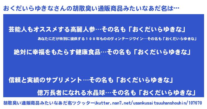 | ヘコむあだ名 | 『おくだいらゆきな(笑)』『おくにー』 |