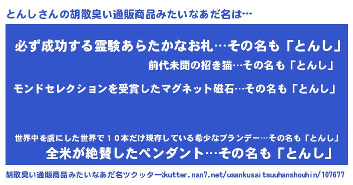 | ヒーロー風カッコイイあだ名 | 『慈愛の使者とんし』『スーパートンシ』 |