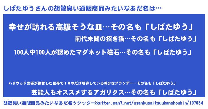 | 男性向けラノベタイトル風あだ名 | 『シバタユウスレイヤー』 |