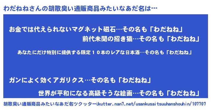 | 意味不明あだ名 | 『住所不定無職わだねね(65歳)』 |