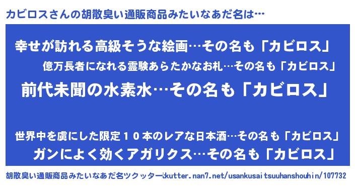 | 男性向けラノベタイトル風あだ名 | 『カビロスに滅ぼされるだけの簡単なお仕事です』 |