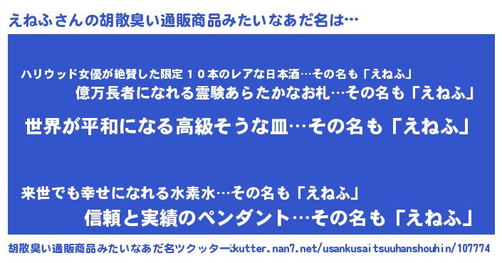 | 意味不明あだ名 | 『えねふフォーエバー』『ペロリンえねふ』 |