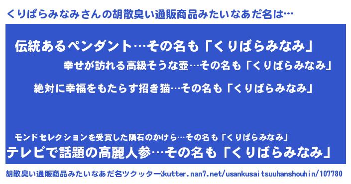 | 意味不明あだ名 | 『永久保存くりばらみなみ』 |