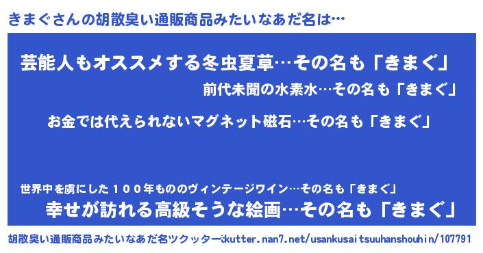 | ヒーロー風カッコイイあだ名 | 『愛の使者きまぐ』『最強戦士キマグ』 |