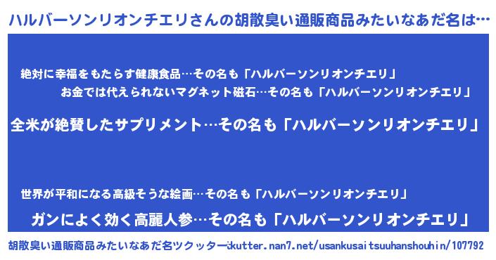 | 意味不明あだ名 | 『とにかく怪しいハルバーソンリオンチエリ』 |