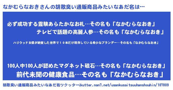 | 意味不明あだ名 | 『住所不定無職なかむらなおき(79歳)』 |