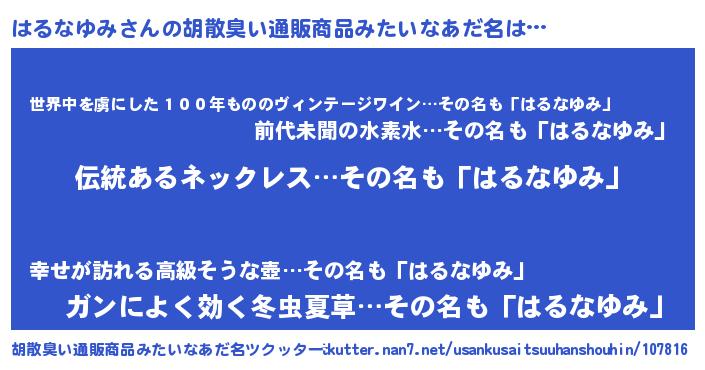 | 意味不明あだ名 | 『とにかく怪しいはるなゆみ』 |
