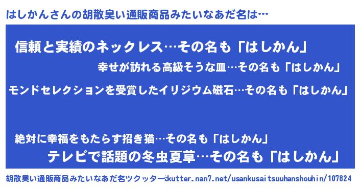 | 意味不明あだ名 | 『ヨモギ科はしかん属』『自称はしかん』 |